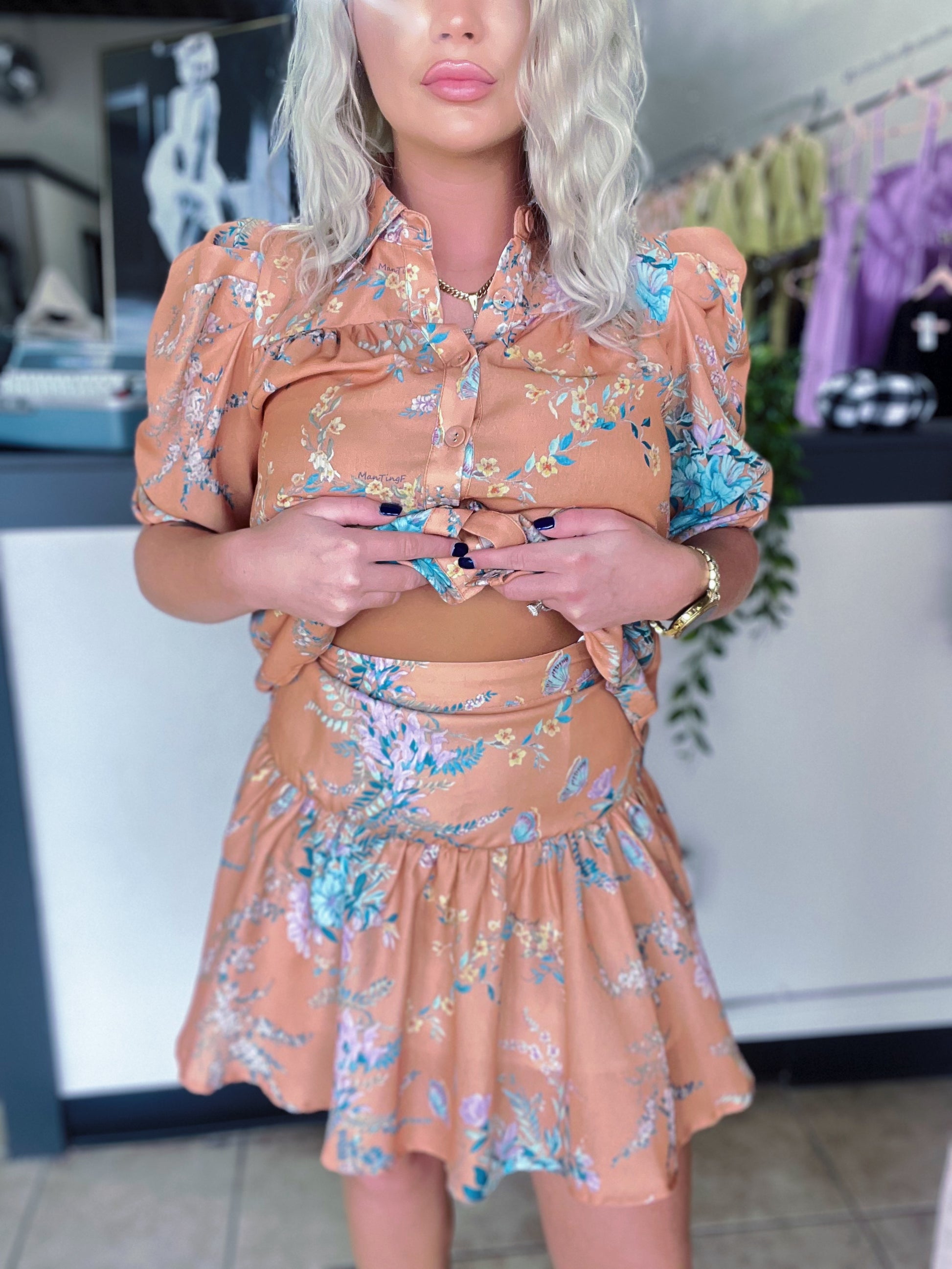 With its eye-catching floral print and flattering silhouette, this versatile set is a must-have for any stylish woman's wardrobe.